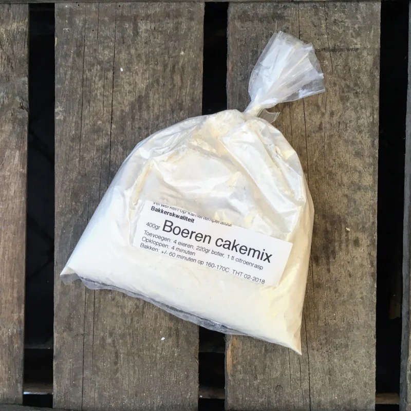Boerencakemix van bakkerskwaliteit! Voor een overheerlijke cake waar veel variatie mee mogelijk is!