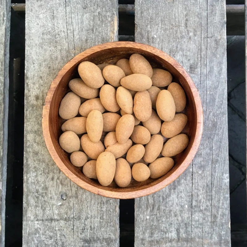 Suiker, Amandelen, Volle melkpoeder, Cacaoboter, Cacaomassa, Kaneel, Arachide olie (Pinda), Emulgator (E322) SOJA lecithine, Natuurlijk vanille aroma, Glansmiddel (E414)