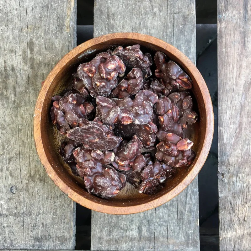Pinda, Suiker, Cacaomassa, Cacaoboter, Emulgator (E322) soja lecithine, Natuurlijk vanille aroma