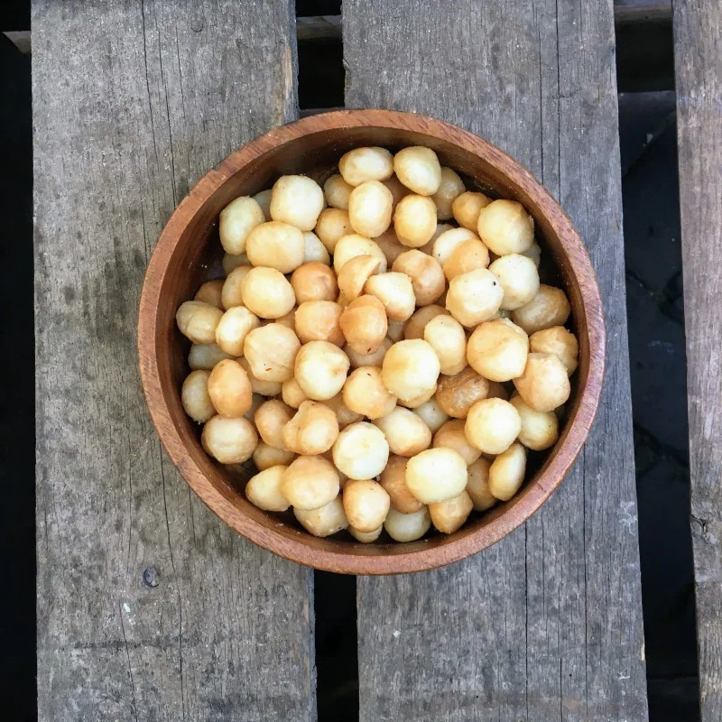 Heerlijke macadamia's zonder zout: lekker om van te snoepen. Het is een vet nootje, maar bevat veel goede vetten. Dus als u met mate macadamia's eet is het zelfs gezond!