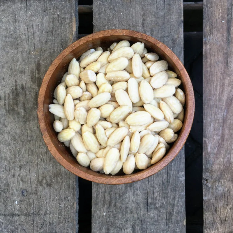 Deze blanke amandelen zijn geblancheerd - kort gekookt - om het velletje eraf te halen. Hierdoor is de textuur iets zachter geworden, maar zijn ze geschikt om o.a. amandelspijs, amandelmeel, amandelboter of amandelmelk van te maken.