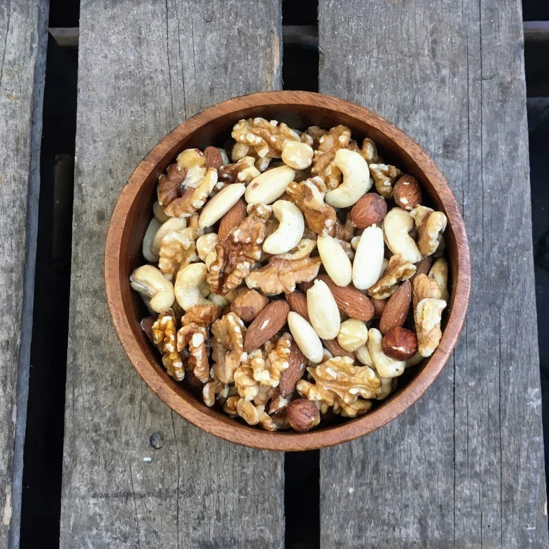 Een heerlijke ongebrande notenmix bestaande uit walnoten, amandelen (met en zonder vlies) en cashewnoten. Perfect om te eten als tussendoortje of bij het ontbijt!