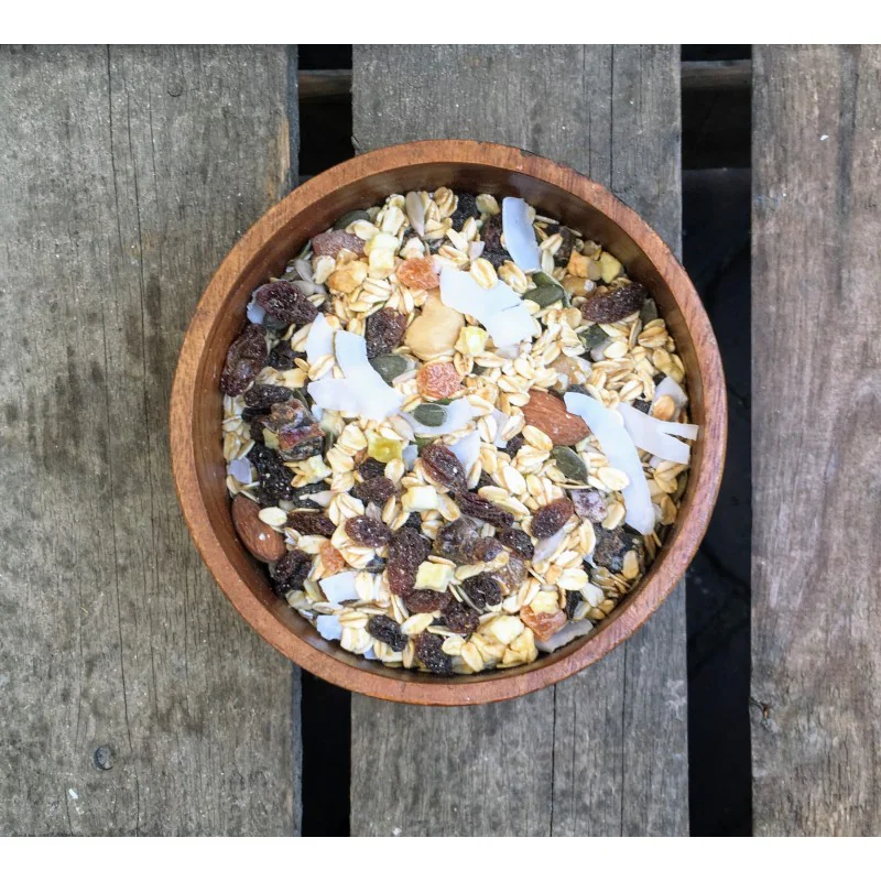 De havermuesli zit vol producten met goede gezondheidsvoordelen. Zo zitten de rozijnen vol met vitaminen en mineralen die o.a. essentieel zijn voor de vorming van nieuwe bloedcellen en het voorkomen van bloedarmoede. Daarnaast zitten ze vol met koolhydraten, wat zorgt voor nieuwe energie. Zeker 's ochtends is dit ideaal!