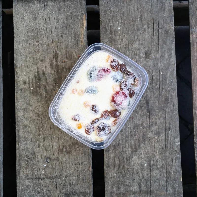 Spoel de vorm waarin u de vruchtengries wilt doen om met koud water, doe de vruchtengries erin en laat het geheel afkoelen en opstijven.
