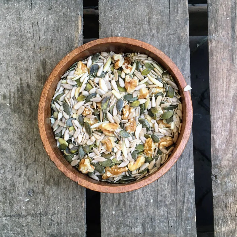 Amandelen, Pompoenpitten, Sesamzaad, Zonnebloempitten, Walnoten